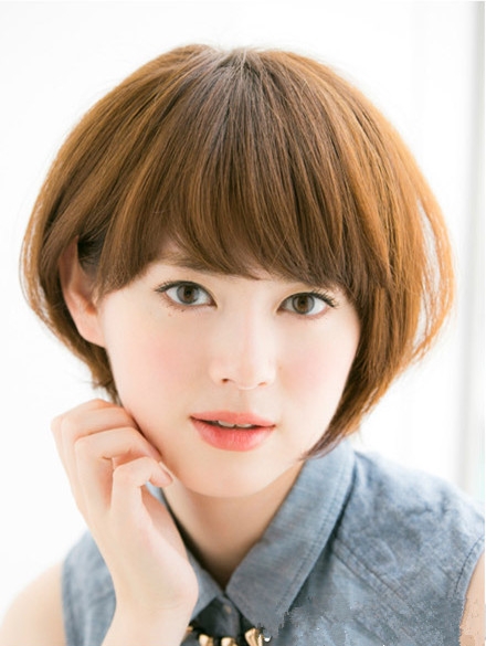 时尚看点:这款齐耳短发烫发发型既轻柔又蓬松,搭配长长的刘海遮盖住额头,露出动人的双眼,加上棕黄色短卷发散发出唯美的色泽外,还显可爱与甜美范哦。
