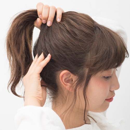 绑成高耸马尾后扭转发辫。