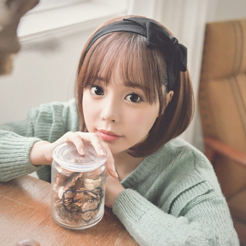 时尚看点:这款韩式空气刘海短发发型看起十分的清新甜美,空气刘海+可爱短发搭配的完美造型,将女生清纯的迷人气质显尽,加上大蝴蝶结发箍的点缀,瞬间增添了邻家少女清新甜美范。