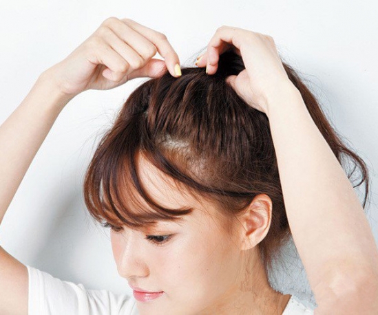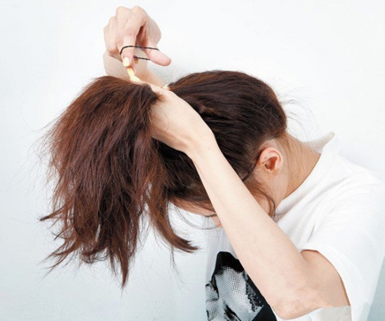 绑好头发之后,头顶的发丝往上稍微拉松会显得马尾更加好看些。