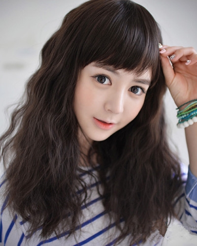 时尚看点:超级卡哇伊的长发蛋卷头让女生看起来立刻年轻了五岁,加上齐眉刘海搭配上无辜的表情,这样的女生发型十分惹人怜爱。