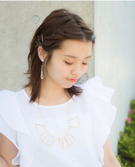 时尚看点:这款无刘海齐肩短发扎发造型,给人十足的夏日清爽感,中分刘海扭转出别致的纹理,彰显出设计感的独特,用发夹固定后瞬间露出一张清爽迷人的脸蛋,再将脑后的头发梳理出卷翘的弧度,自然的摆动在肩头,甜美而自然。