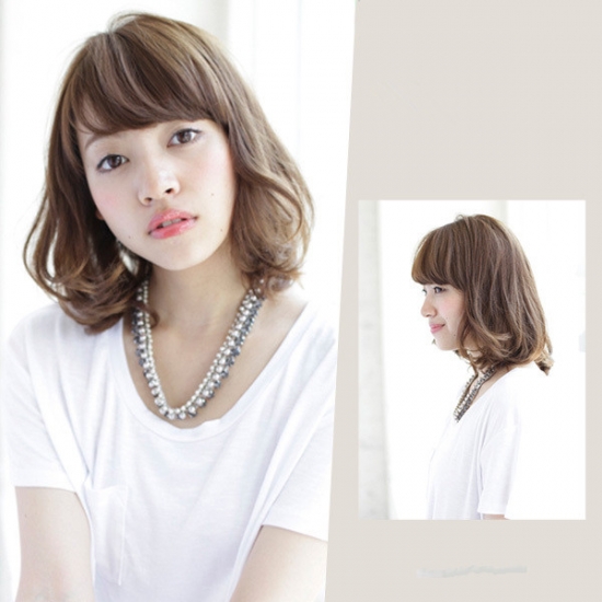 时尚看点:厚重齐刘海的这款齐肩发型修饰出女生立体的五官,再加上两侧错落卷曲的头发,修颜减龄效果非常好,是女生们不容错过的一款小脸发型哦。