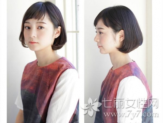 时尚看点:略微一九分的不规则斜刘海十分俏皮可爱,同时也清晰的突出女生精致五官,内扣的柔顺波波头短发让女生非常乖巧动人。