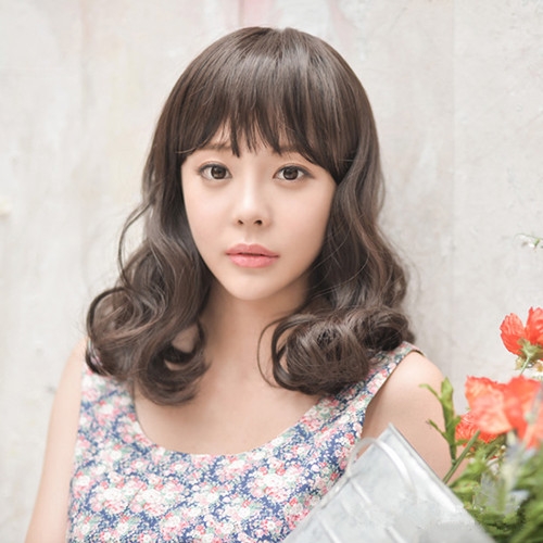 时尚看点:清新范十足的一款中长韩式梨花头造型,利用齐刘海很好的扣住了宽大的额头,通过两侧自然弧度达到修饰脸型的效果,再将梨花头营造出自然蓬松度,使得发型看起来不会呆板。