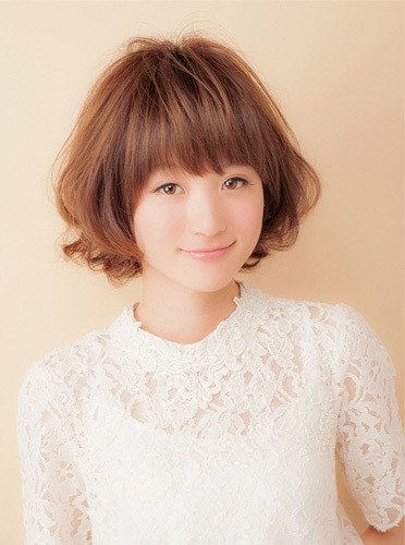 时尚看点:这款短发梨花头是甜美减龄的必备发型之一哦,碎发刘海清新灵动,两颊的卷发可爱俏丽,修饰出的瓜子小脸更显可爱,加上经典的棕色染发后就显时尚魅力了。