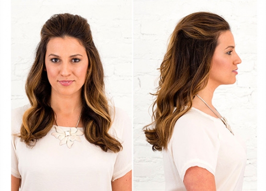 时尚看点:这款简约欧美风公主头扎发发型,虽是十分简单却尽显最IN简约风格,将额前头发全部后拨的设计感可以突出女生精致的五官,而两侧盖住耳朵的微卷头发可以帮助女生修饰脸型,使得脸更加小巧而精致。