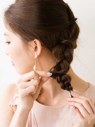 辫子固定后拉扯蓬松。