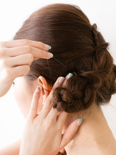 然后再用发夹固定盘起,就可以完成这款盘发发型