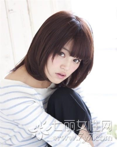 时尚看点:棕色发色的这款小脸发型十分发显时尚哦,两脸微微内扣的发尾很好把女生的脸给修长,瞬间让一张迷人的小脸呼之欲出,配上修颜的斜刘海后就更加完美了。