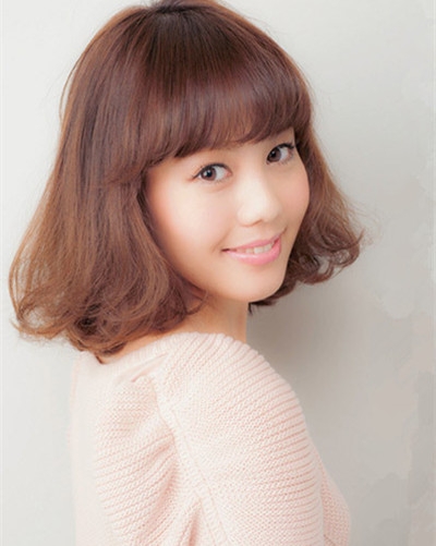 时尚看点:时尚染发的齐肩短发果然是十分的显迷人魅力,蓬松感的打造+微微内扣的发尾,无不让这款短发充满的甜美与清纯的样子,那可人的斜刘海也起到了良好的修颜作用。