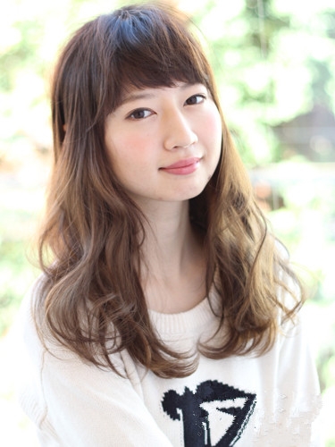 时尚看点:这款圆脸微卷发发型十分小家碧玉的气质,搭配一款厚重的大斜分刘海,不仅为圆脸起到修颜作用还凸显出女生一双明亮的眼睛,加上浅棕色的染发与微卷发尾设计感具有很好的减龄效果哦。
