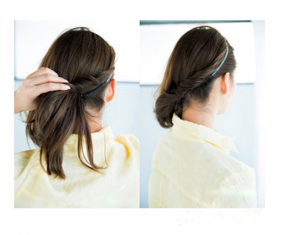 扭转头发发尾塞进发带中,再用U型发卡固定好就可以完成了。