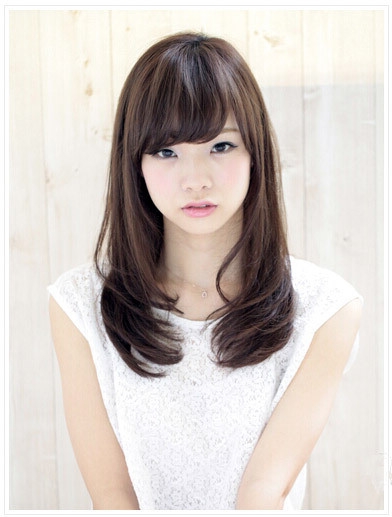 时尚看点:利用厚重的刘海遮盖住额头来衬托出一双迷人双眼,而那两边款款而落的内扣梨花头发型轻松勾勒出了一张精致的小脸,非常的甜美吸眼哦,加上内扣线条感的设计使得整个造型看起来更加的甜美。