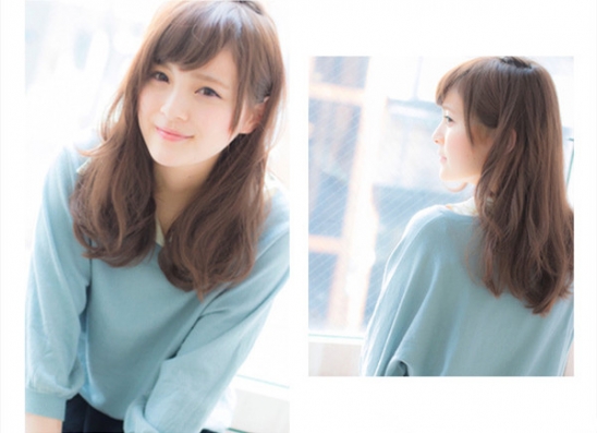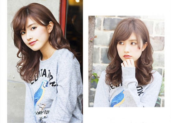 时尚看点:浅棕色染发的一款韩式中长卷发发型,给人满满的韩式甜美风味,饱满而丰盈的卷发自然散披在肩头,尽显浪漫的迷人气质,配上一款修颜十足的三七粉刘海后就更加的完美动人了。