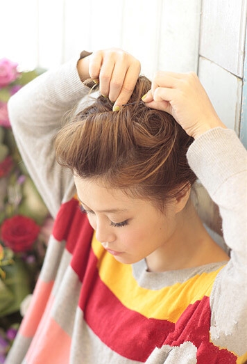 时尚看点:这款头发扎发十分显特别感,将前额的刘海扭转成发辫后固定在头顶,轻松显露出女生光洁的额头,同时彰显出清新与清爽的一面,头顶头发蓬松感的打造让整个头型更显时尚设计风味。