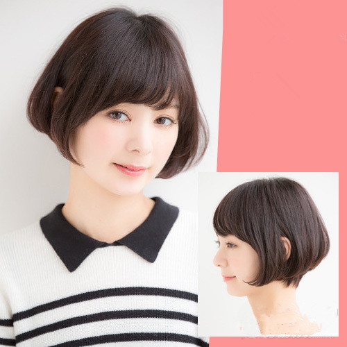 时尚看点:浅棕色染发的一款短发发型,向人们显露出满满的清新与甜美气质,微微内扣的发尾衬托一张可人的小脸,加上空气感的斜刘海搭配,使得整个造型既时尚有范又简约大气。