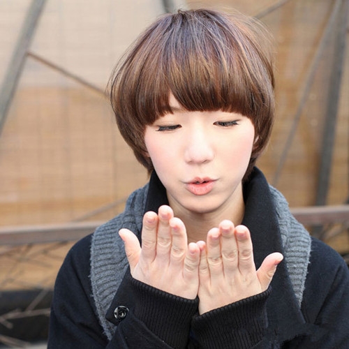 时尚看点:十分可爱而充满趣味的这款锅盖头短发,非常适合现在的女学生哦,时尚棕色的让锅盖头尽显时尚时尚风尚,加上厚重的齐刘海搭配后更是显可爱减龄百倍。