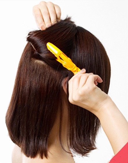 最下层的头发夹好后,我们将上层的头发放下一部分。