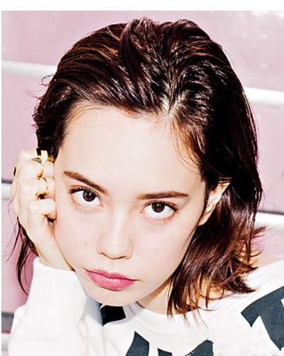时尚看点:湿发效果的这款中短发发型备受潮流个性女生v的热衷,刘海用定型水打造出精致的纹理,露出光洁的额头,尽显帅气十足。