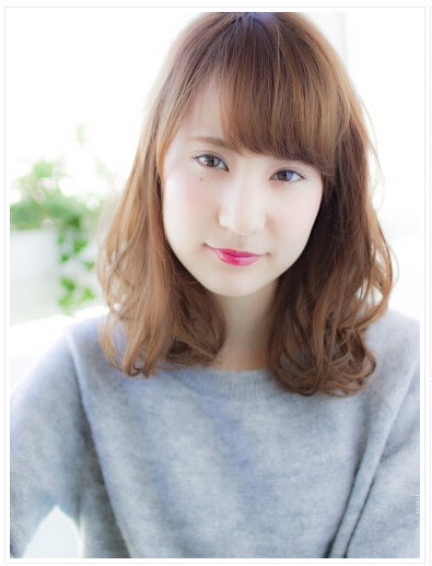 时尚看点:这款齐肩卷发发型比较适合长脸mm,轻柔的侧分长刘海遮盖住了整个额头,具有缩小脸型长度的作用,而空气感烫发与染发让造型更显清新动人。