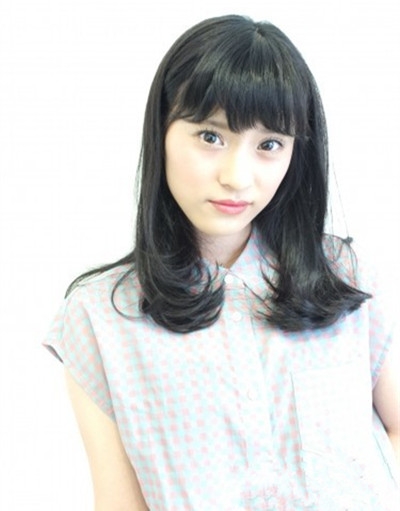 时尚看点:这款黑色系的中长发烫发造型,利用微微内扣的厚重刘海修饰出完美的脸型,而那款款的大卷内扣发尾,造造型清纯中增添了几抹别致感。