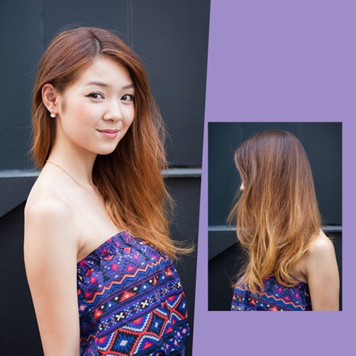 时尚看点:将这款韩国卷发染上铜红色,瞬间让时尚与吸眼指数倍增,把偏分的头发全部挽到一边,塞到耳后披下,露出修长的脖子和皮肤,搭配一个闪闪的小耳环更加为发型加分哦!
