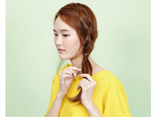 将分开的长刘海侧编一个松垮的麻花辫