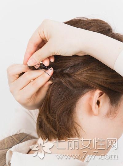 再将脑后剩下的头发也用发夹固定起来,就可以完成这款波波头短发发型打理了。