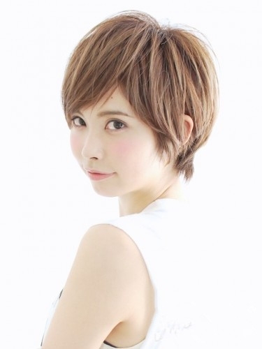 时尚看点:这款帅气的短发瓜子脸发型与时尚的米棕染发的搭配,向人们展现出十足的女生娇小粉嫩风,配上一款简单的斜刘海却能达到十足的修颜作用,使得瓜子脸变得更加精致吸眼。