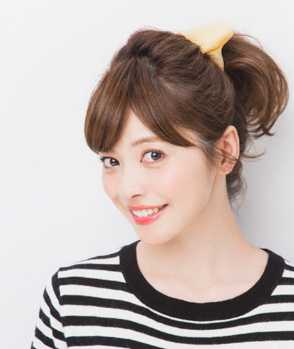 时尚看点:这款中短发扎高耸马尾辫发型,不仅洋溢出清爽的姿态而且还十分显洋气哦,将马尾的发尾打造出蓬松的纹理感,可以使得马尾看起来而更加的饱满又气质,加上一款二八分的刘海搭配就更是修颜十足,最后配上亮黄色的发饰点缀,瞬间让整个造型的活力指数更添一级。