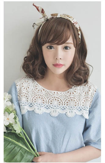 时尚看点:给人清新韩范的这款女生可爱短发发型,将两边头发烫出优美的弧度,并且自然的散落在肩头,满满都是向人彰显出浪漫与唯美的感觉,加上贴紧脸颊的蓬松卷发可以为脸型起到很好的瘦脸效果,配上精致的发箍点缀后就更加的甜美可人了。