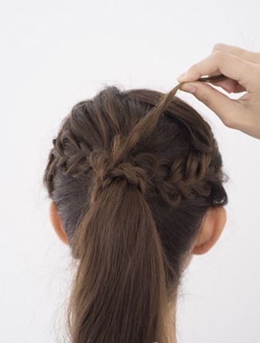 最后再稍稍打理一下就可以完成这款甜美的马尾扎发了。