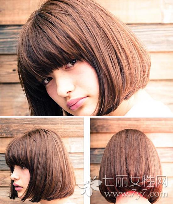 时尚看点:齐刘海bob头,整体的弧度都很圆润,有一些小颜的效果。对于本身是长发,却想要剪短的人来说,这是一个不错的选择。