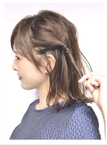 取左右耳边的发束各自以逆方向紧紧扭转几圈。