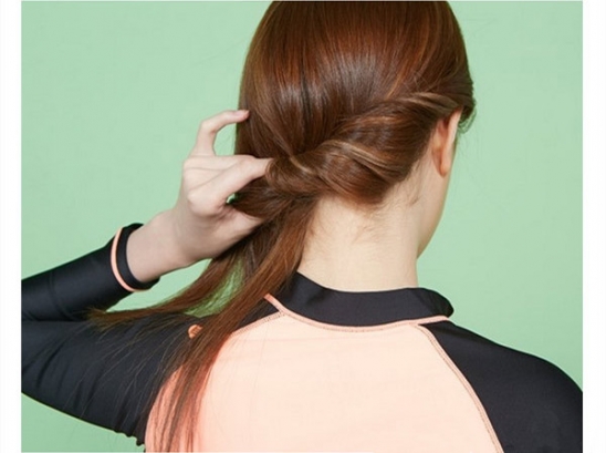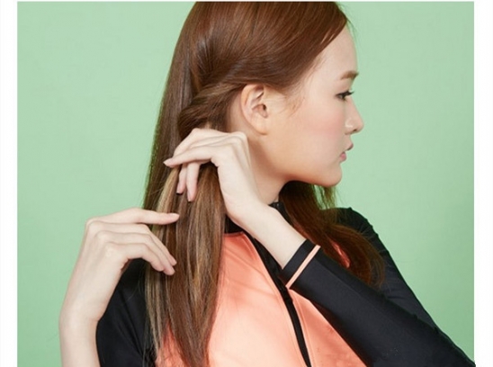 直至将头发扭到另外一侧耳后在停止扭转头发。