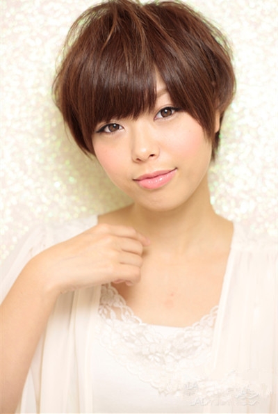 时尚看点:简短的这一款圆脸发型看起来十分的具有轻熟女气质,整个造型采用蓬松感的打造+遮眉的厚重刘海的结合,不仅使得发型更加丰富饱满更是在视觉上具有显脸小的效果。
