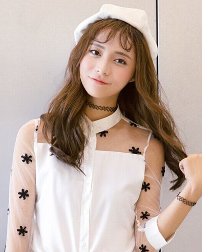 时尚看点:韩式范儿十足的这一款空气刘海卷发发型,满满都彰显出女生的甜美与可爱,烫卷的长发搭配空气感的刘海的造型可是很多女生的最爱哦,配上一顶贝雷帽点缀后就更加好看了。