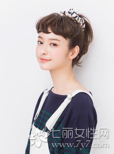 时尚看点:清爽感十足的这一款高耸马尾扎发发型,不仅清爽展露出女生那张可人的小脸与立体的五官,而那蓬松感烫卷的刘海露出半截额头,轻轻松松就展现出活力的俏皮气质来,加上高耸的马尾用发饰点缀就更加清新减龄了哦。