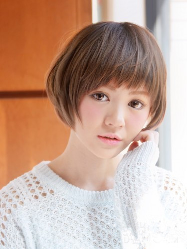 时尚看点:这款圆脸短发发型让女生看起来十分的清新可爱,紧贴在两颊边的头发为圆脸起到了一定的修饰效果,而那微微露眉的刘海在修颜之外还凸显出女生那可爱的旺旺大眼,整款圆脸女生短发尽显可人气质。