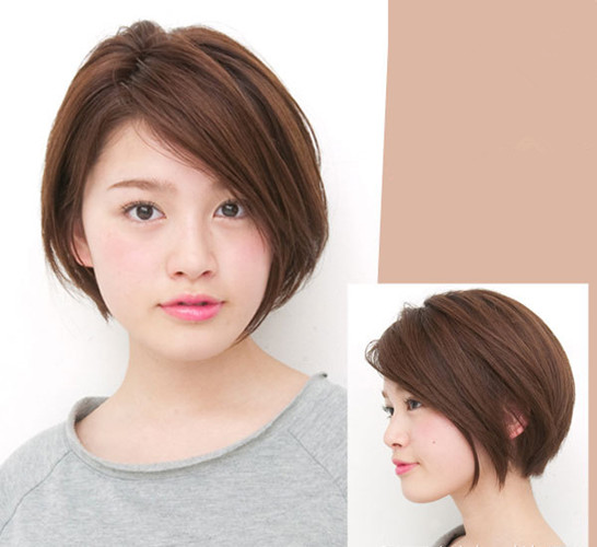 时尚看点:适合胖脸脸型的这一款波波头短发发型,十分显女生的清新气质,微卷内扣的发尾+脸颊两侧的头发都能帮助mm修饰脸型,加上时尚的棕色发色后更是吸眼显气质。