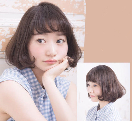 时尚看点:这款波波头短发非常合适胖脸女生哦,向内卷翘烫的发尾衬托出女生那可爱的小胖脸,而蓬松感的运用更是让这款胖脸发型更加丰富与饱满,配上齐刘海后就可爱动人了。