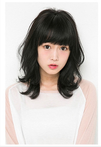 时尚看点:这款黑色发色的齐肩短发烫发发型,让人看起更加的显清新与可爱气质,两边自然滑落的烫卷头发散落在肩头,既时尚好看又能修脸,配上一款可爱的齐刘海就更加显女生萌哒哒的感觉了。