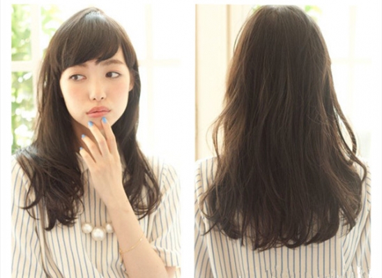 时尚看点:黑色发质的这一款鹅蛋脸中长卷发看起十分的清秀,厚重的刘海搭配可以轻松修颜显好看脸型,加上两边款款而了落的烫卷头发更是发型倍增了许多时尚味道。