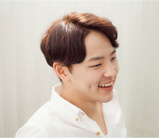 时尚看点:这款四六分的韩国男生短发造型,不仅不显老气范儿给人满满的复古味道,将两边的头发烫出一个卷的弧度,瞬间让复古时尚气质倍感增加,再配上棕色的染发就显小鲜肉魅力了。