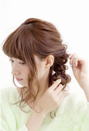 最后在微微调整一下卷发前额的刘海,就可以完成这款卷发编发发型了。