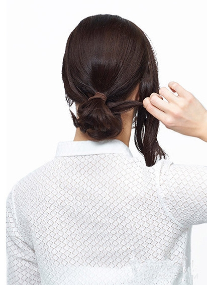 取出两侧的头发缠绕在脑后。