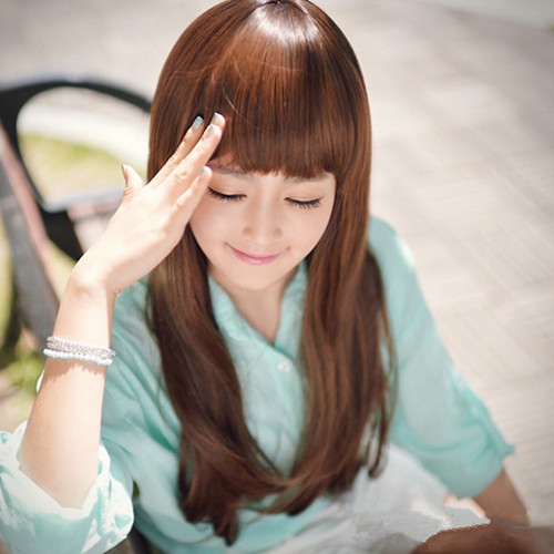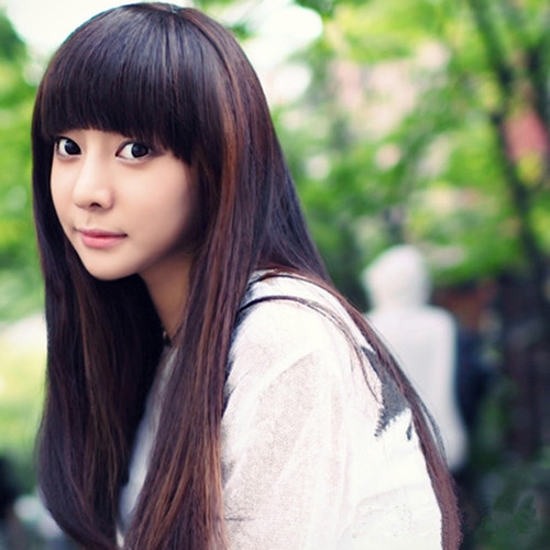 时尚看点:齐刘海长直发发型最适合萌妹子们了,整齐的齐刘海搭配披肩的长发,不仅让萌度倍增更是可爱动人,而那齐眉的刘海还衬托出女生那一双明亮的大眼哦。