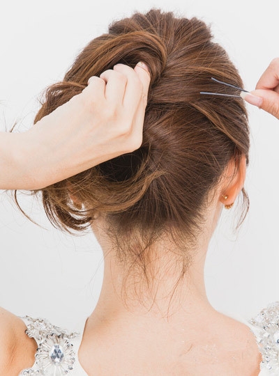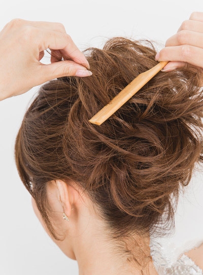 最后用梳子将发尾打毛,就可以了这款齐肩短发扎发了。