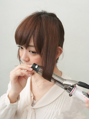 用加热的卷发棒将头发烫卷。